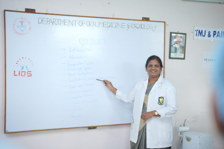 Crossroad where expertise meets innovation, elevating standards through professional development and compassionate careRenowned for excellence in dental education, our department offers a 3-year postgraduate program in the vital field of Oral Medicine and Maxillofacial Radiology, established in 2014. This specialty bridges dentistry and medicine through a structured curriculum that integrates digital dentistry, placing our graduates at the forefront of multidisciplinary patient care. As the first point of contact for patients, our department collaborates with a comprehensive healthcare team to ensure a holistic approach to management. We specialize in diagnosing and managing complex conditions, including oral ulcers, precancerous lesions, autoimmune diseases, neuralgias, orofacial pain, TMJ disorders, and oral cancers. Our outpatient department (OPD) ranks among the highest in-patient volume nationwide, a testament to our impactful work. With advanced diagnostic tools such as chairside investigations, oral cancer screenings, biopsies, digital radiography, CBCT imaging, and innovative treatments like intra-lesional injections, custom oral devices, TENS, and laser therapy, we cater to diverse patient needs. Our dedicated faculty elevate the department beyond clinical practice, achieving milestones in research, grants, and forensic applications. With the ongoing success of our alumni and positive patient feedback, we take pride in shaping the future of Oral Medicine and Radiology.